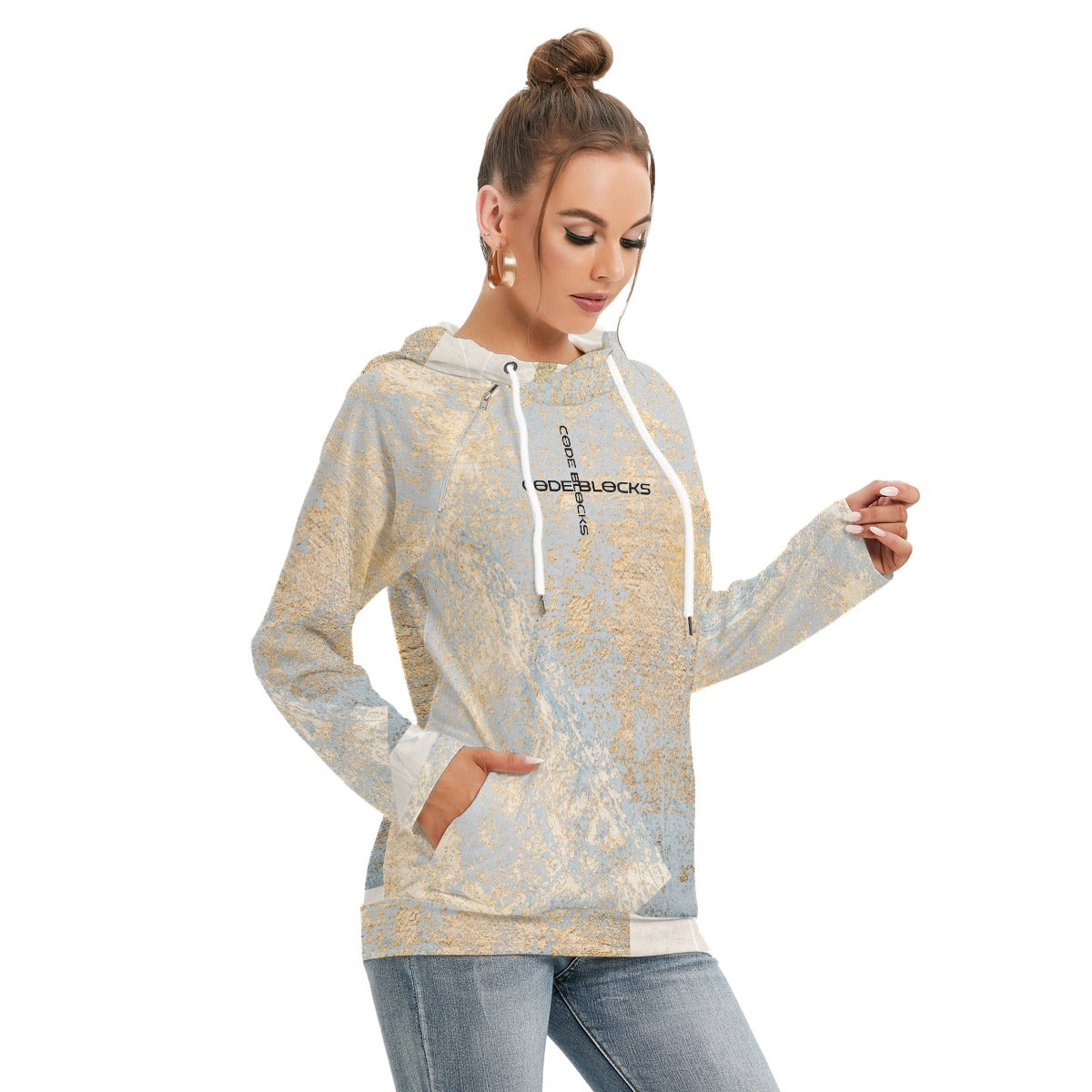 - Double Hood, inside hood with white drawstring, raglan sleeve