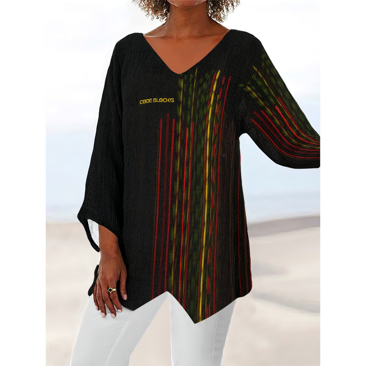 - Long sleeve, V-neck