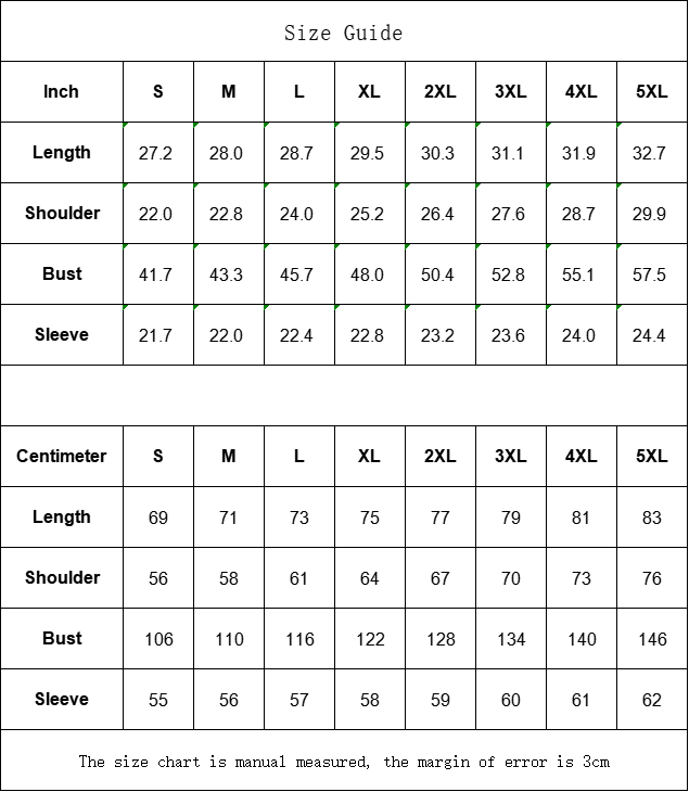 Centimeter S M L XL 2XL 3XL 4XL 5XL