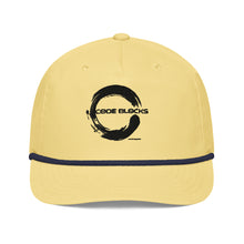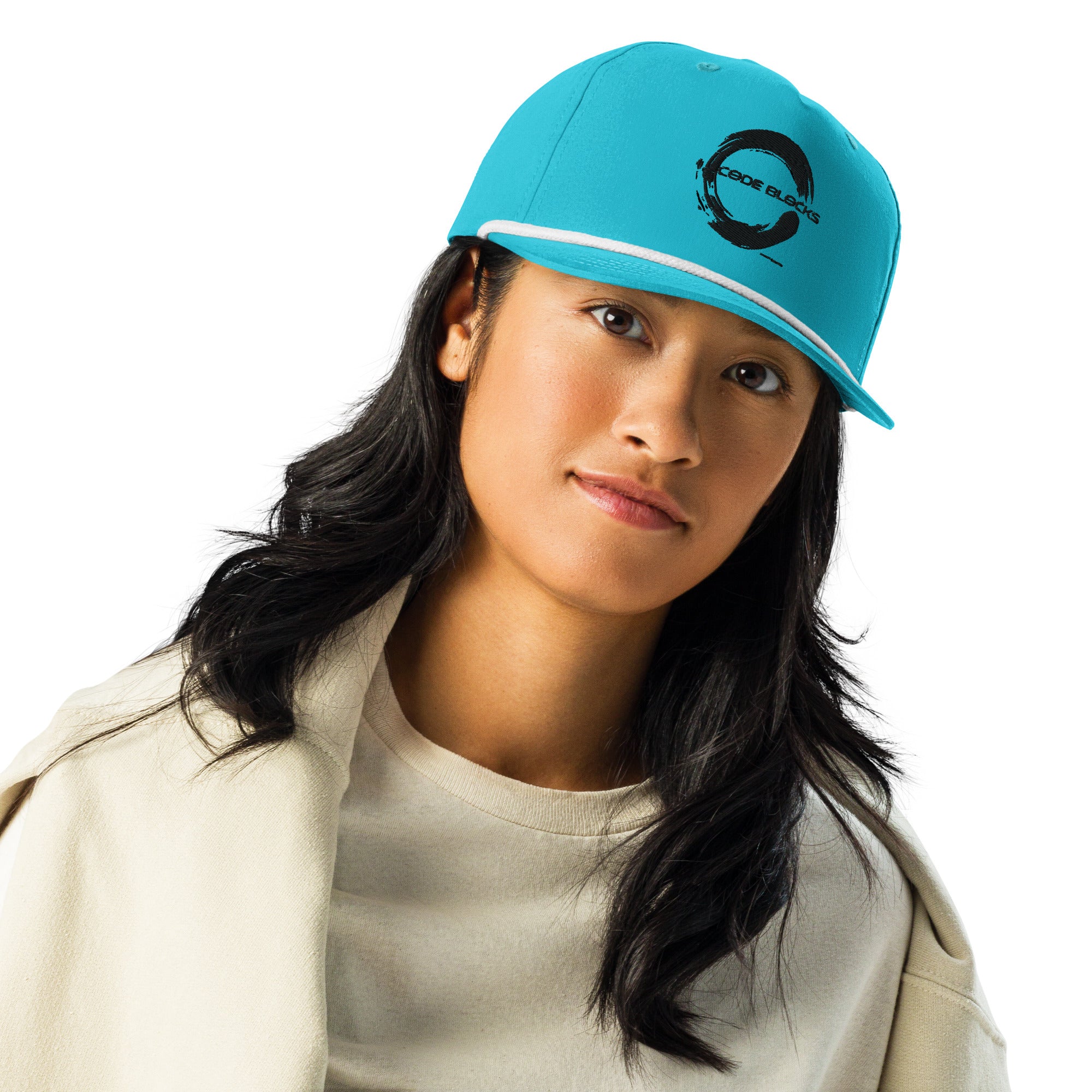 • Semi-curved bill with contrasting rope