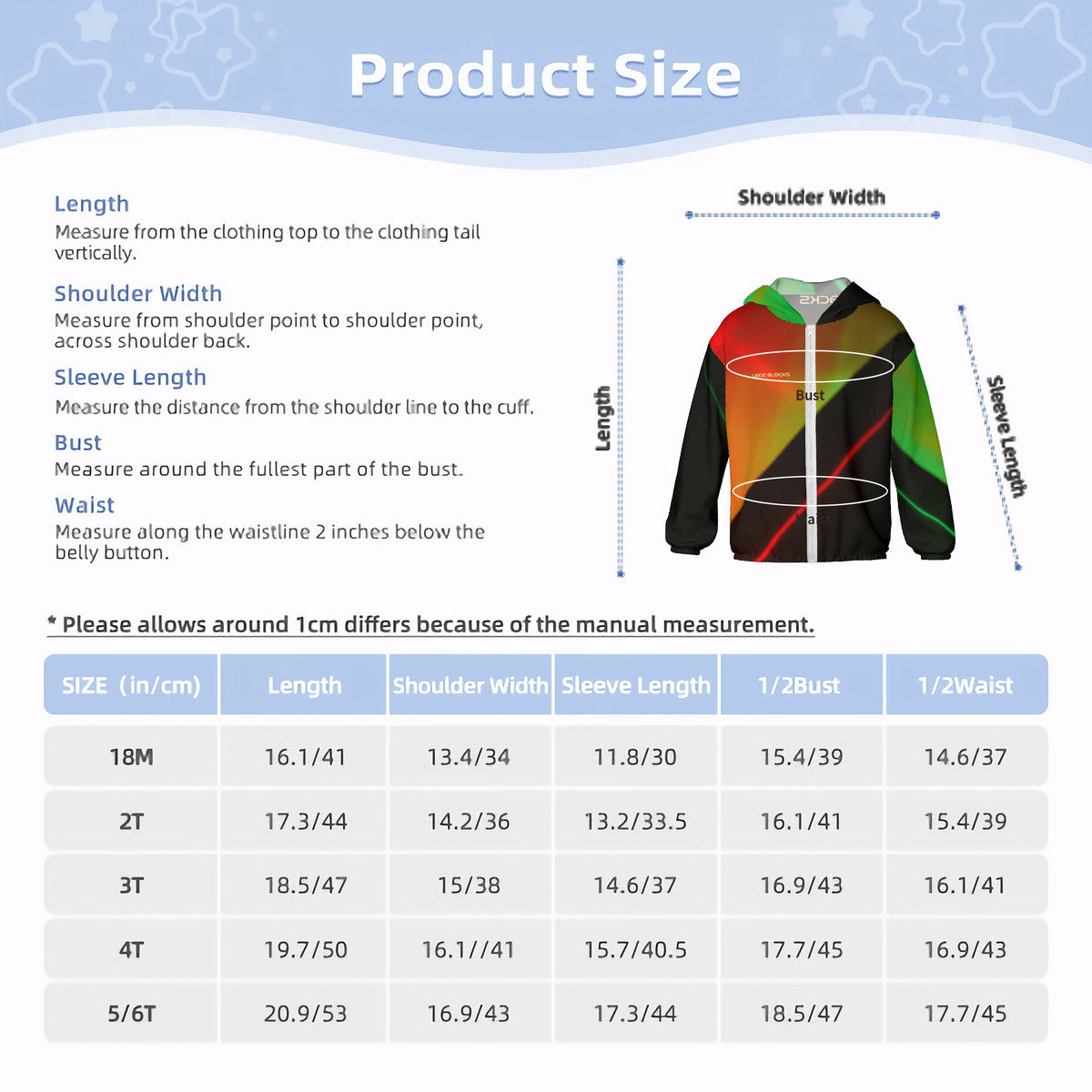 【Special Note】Accurate Sizing - Measurements taken with the garment laid flat. Normal deviation of 2-4cm due to measurement methods. Explore the outdoors with confidence in this full-print single-sided design garment, tailored for children's comfort and style.
