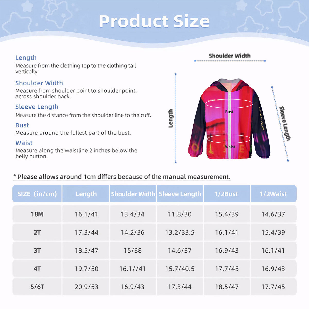 【Special Note】Accurate Sizing - Measurements taken with the garment laid flat. Normal deviation of 2-4cm due to measurement methods. Explore the outdoors with confidence in this full-print single-sided design garment, tailored for children's comfort and style.