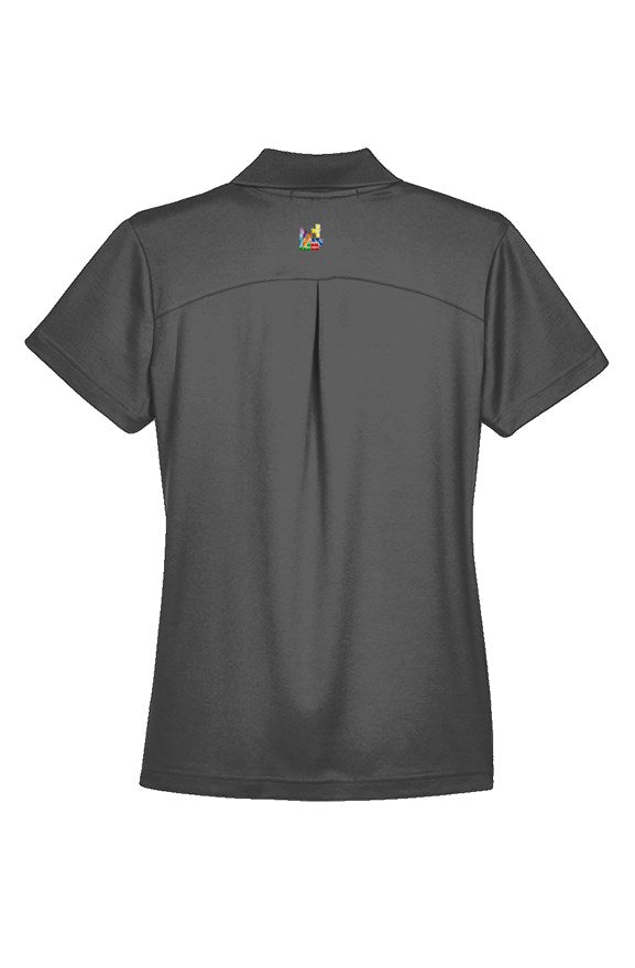 this ladies' performance polo is a great everyday shirt for semi formal or sporty look. it's 100% polyester fabric offers uv protection (15-39) and moisture wicking properties to keep your dry. it has a dual sided mesh to enhance moisture wicking on the outside, but a softer blend on the inside for superior comfort. it's a great shirt for a day on the course or a night on the town.
